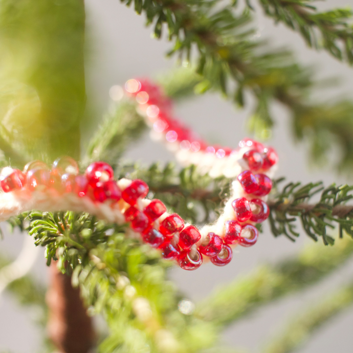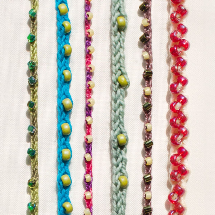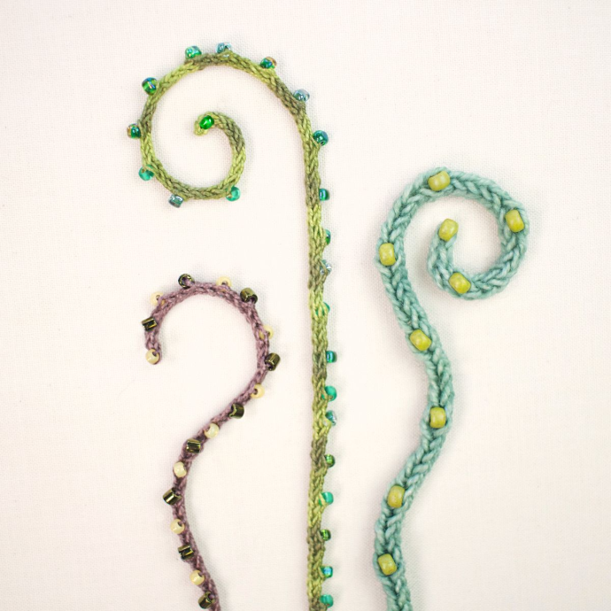 Once you have a small section of i-cord started, you can begin adding beads. The beads can be spaced close together or further apart and can even be doubled up if you choose. See how in the video below!