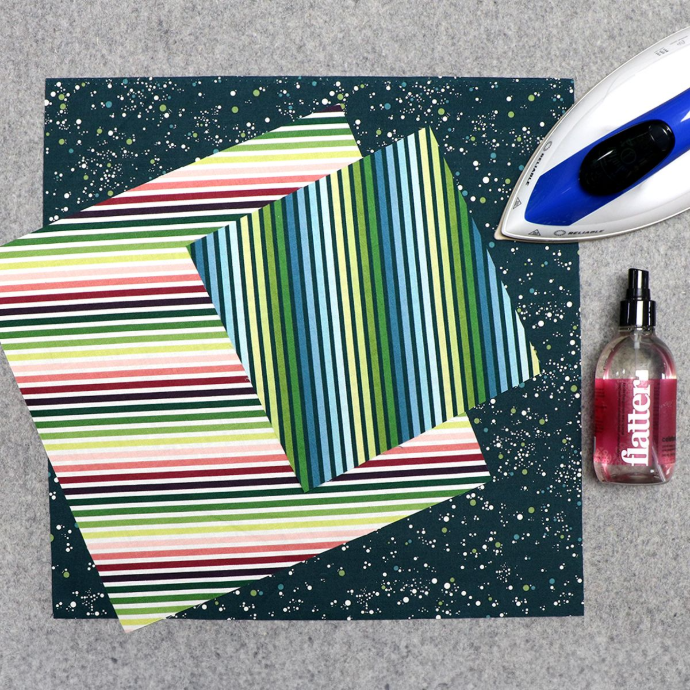 Cut your square of fabric (8" x 8", 12" x 12", 16" x 16", or any other square dimensions) and press with an iron. For an interesting spin on this project, try piecing together multiple fabrics to create a square.