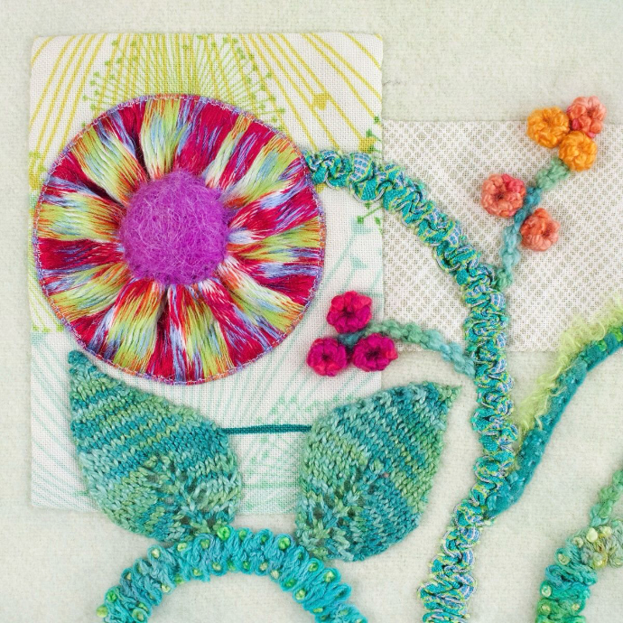 Sue’s Reverse Ribbon Flower technique reveals the hidden beauty on the reverse side, especially with jacquard ribbons. It’s a simple, unexpected trick that adds bold texture and wow-factor to any piece.