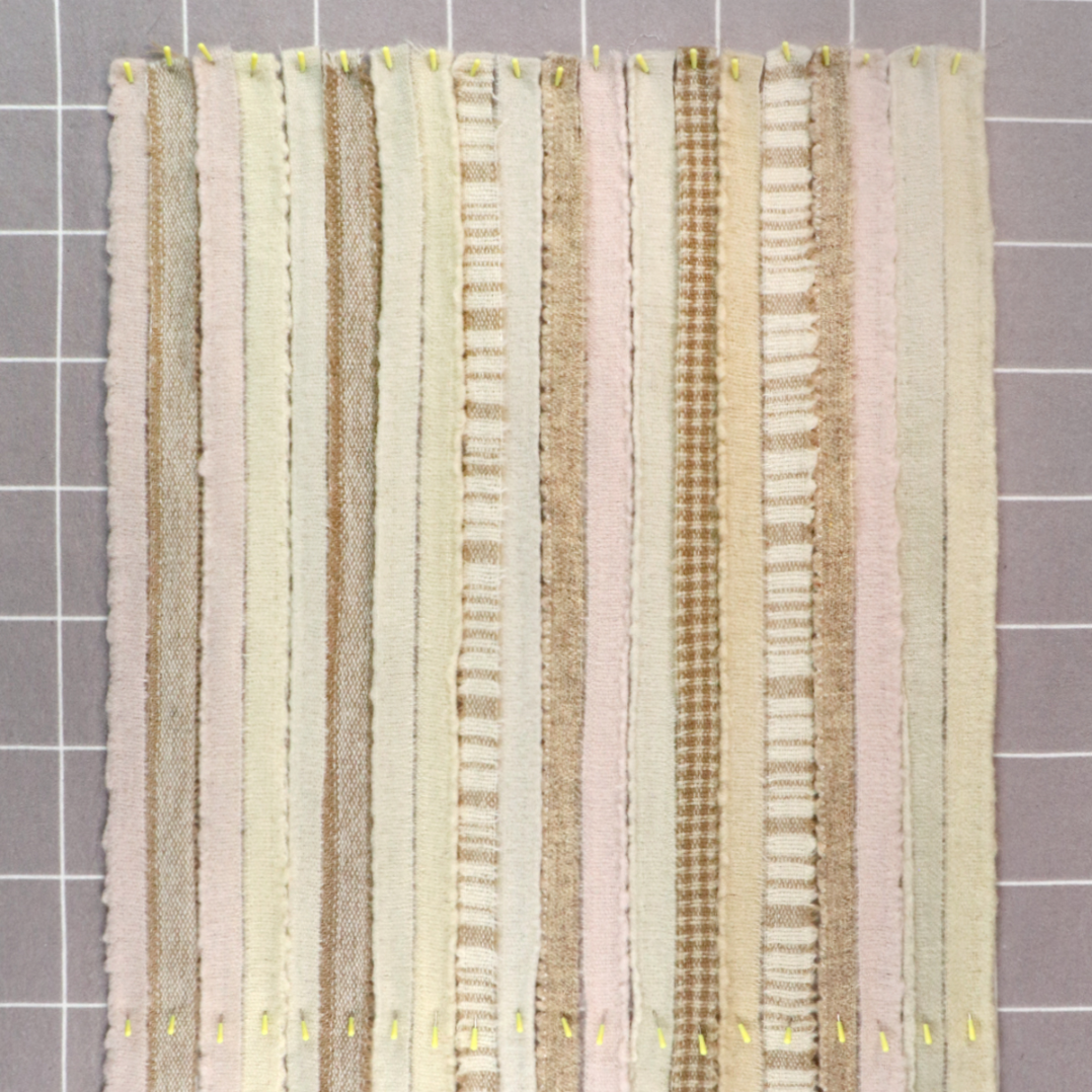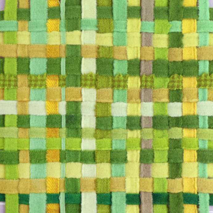 If you would like to extend your weaving, you can always sew strips together. Just be sure the seams are on the backside of your weaving. In this example, the front of the weaving is facing the grid.